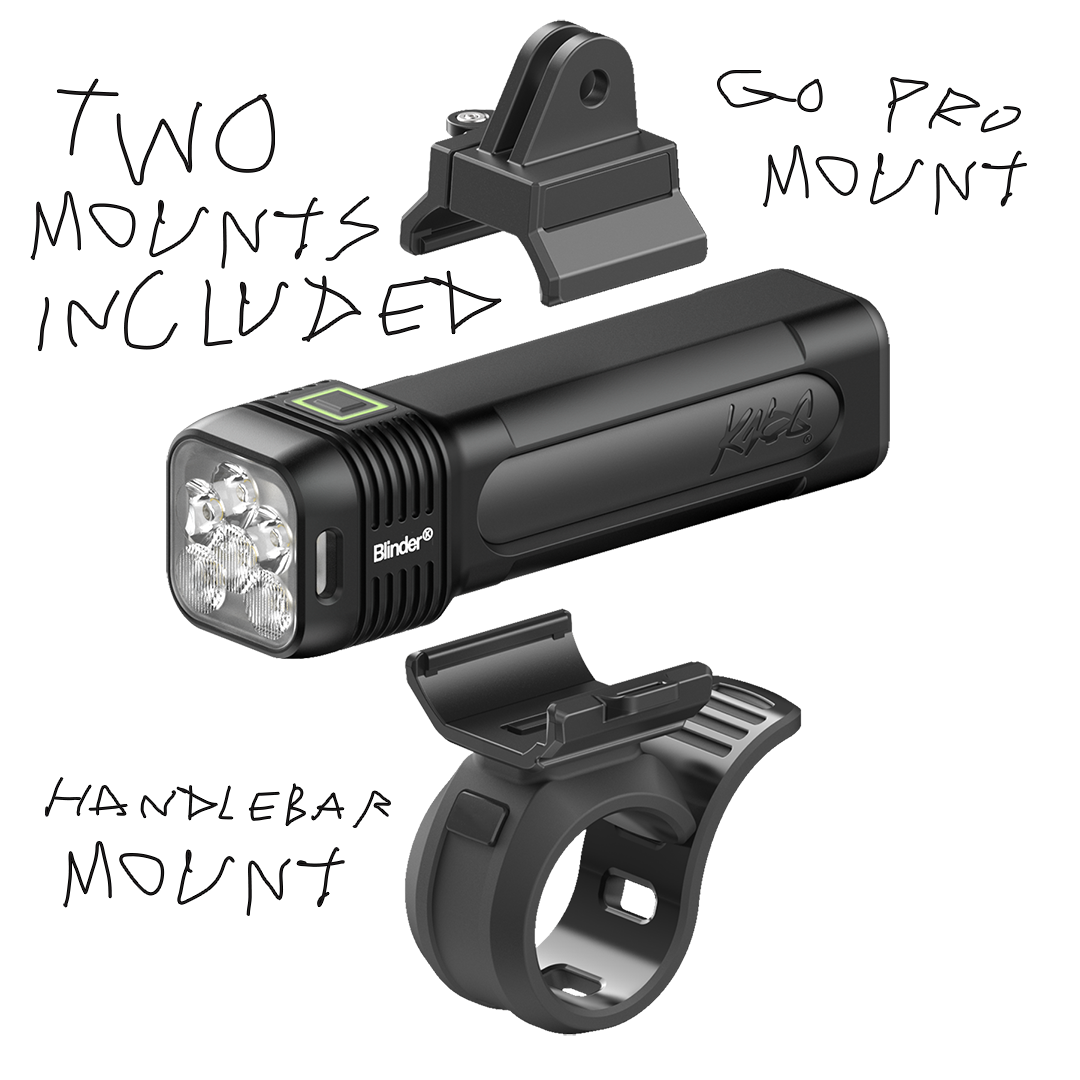 The Blinder 1400 is compatible with the Blinder StVZO Handlebar Mount and Helmet Mount (not included)