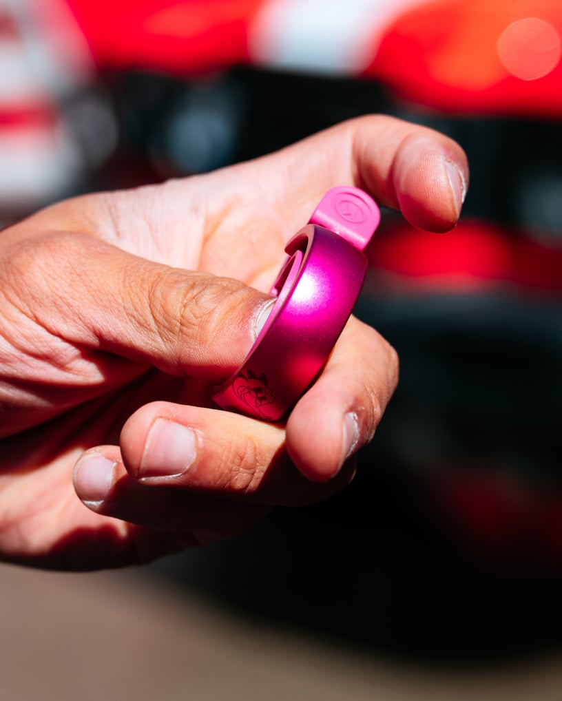 To celebrate our partnership with EF Education and EF Oatly pro cycling teams, we’re releasing a limited run of our team favourites in podium pink. Bike bells generally look & sound a bit ugly. But why? What if they looked sexy & sounded like an angel playing a glockenspiel? A bell with a beautiful tone, but also a remarkable style and choice of materials that embodies a rider’s personality. The Small fits bars 22.2mm and the Large size fits 23.8 – 31.8mm bars.