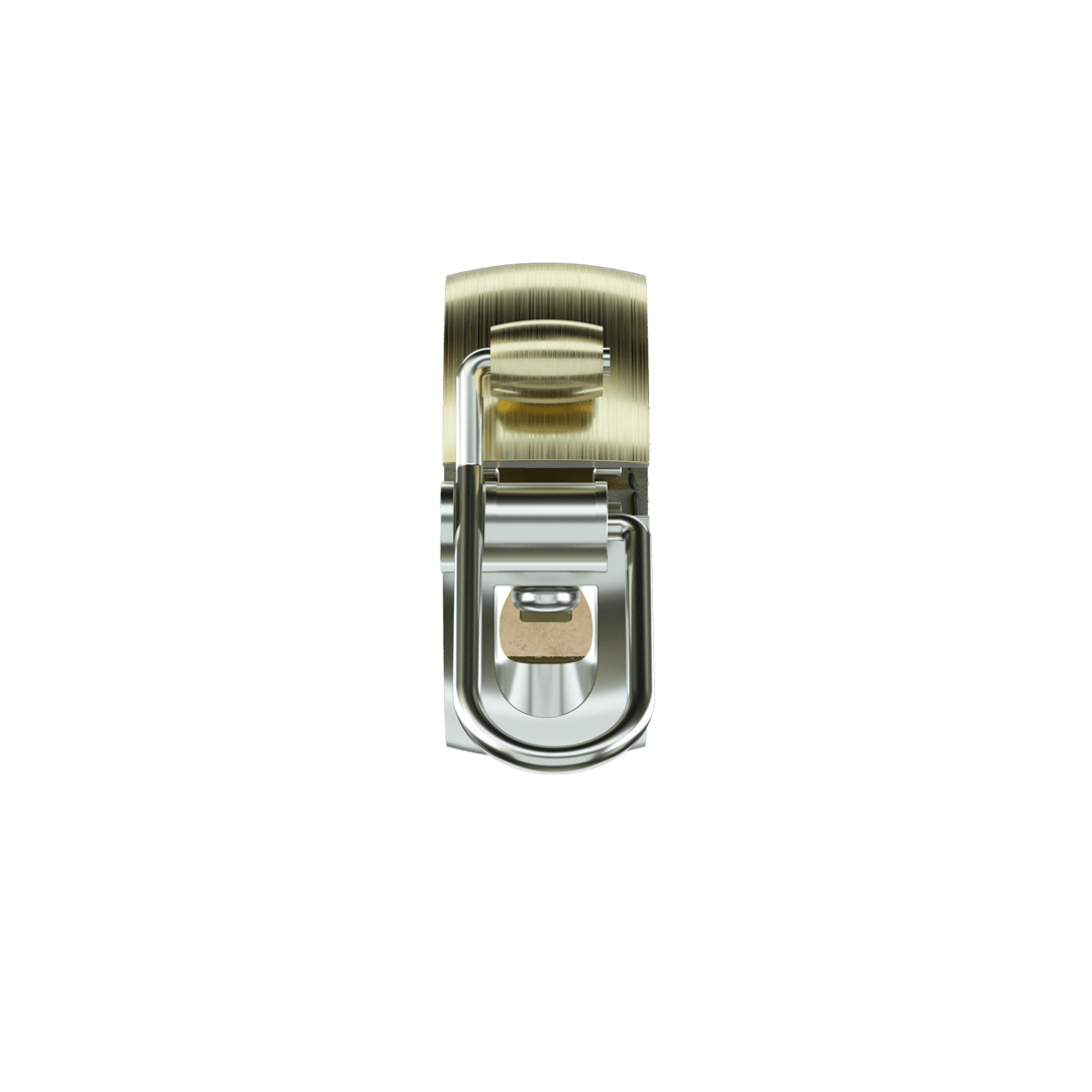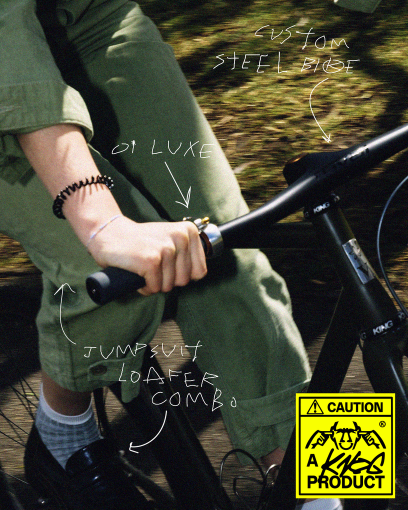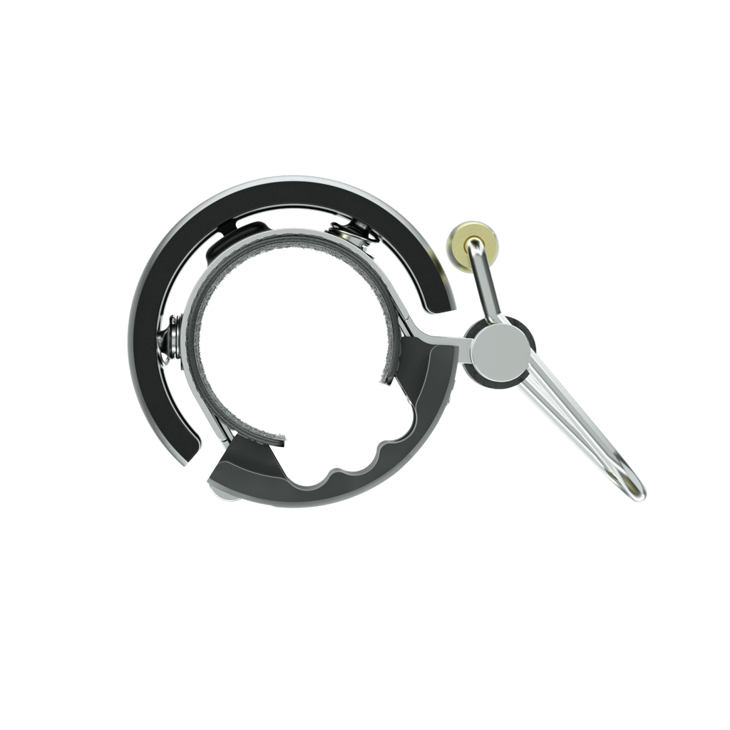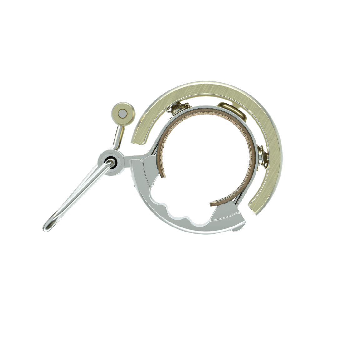 Oi Luxe features a CNC machined ringer, brass dinger, stitched vegan ‘leather’ shim and metal injection molded stainless steel. It's made to last and is a joy to have on your handlebar.