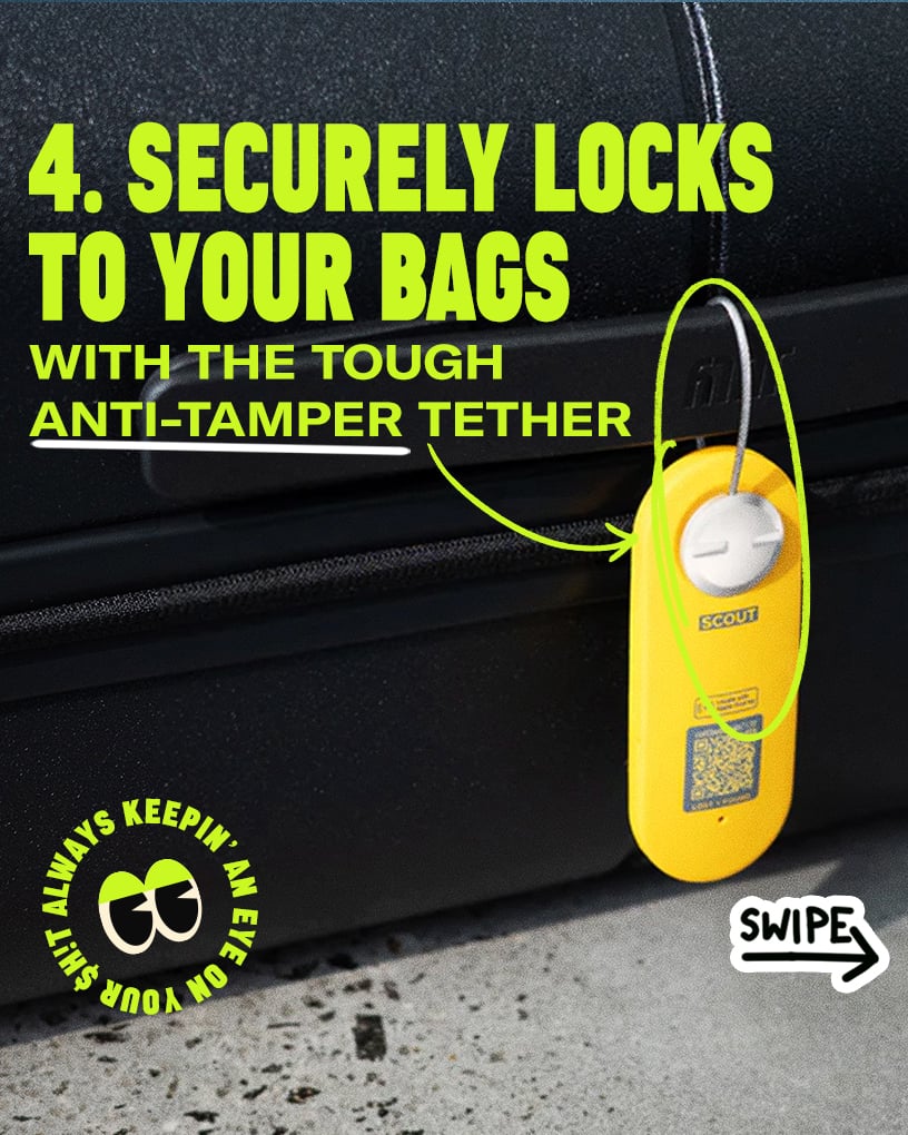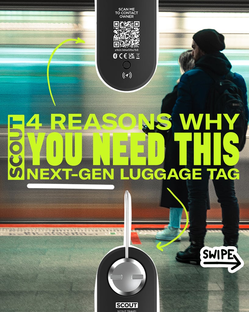 Scout Travel is the world's smartest luggage tag. Attach one to your suitcase and another to your carry-on, then enjoy the peace of mind they bring as you journey.