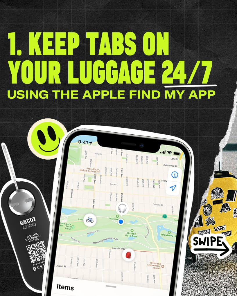 Luggage Finder - Uses Apple's Find My technology so you can quickly locate your luggage anytime, anywhere, with the Apple Find My app.